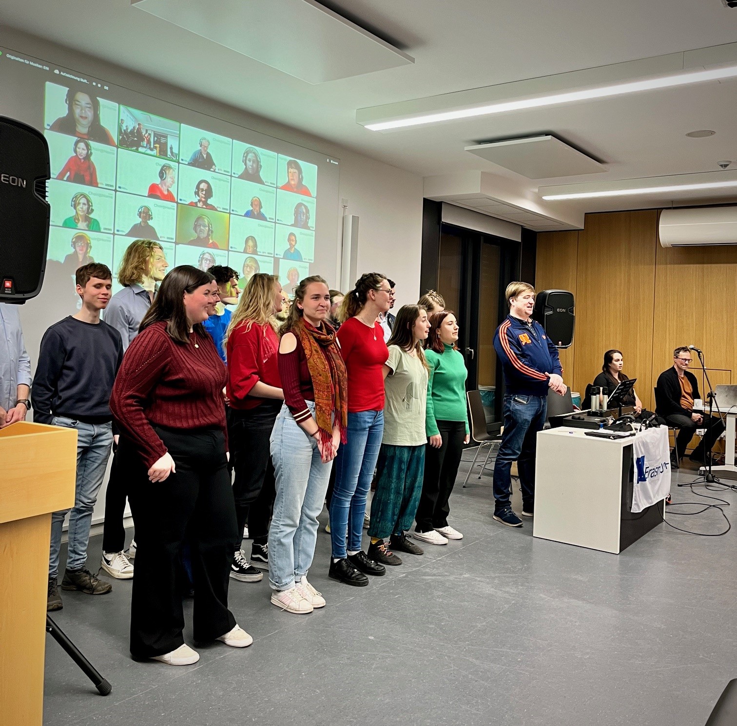 As part of the Vocal Pedagogy Symposium in Munich „In (Kon-)Takt – Generationen durch Musik verbinden“ on March 22 – 23, the choir was able to perform live for the first time and play in front of an audience. This performance marked the first major premiere of our project.